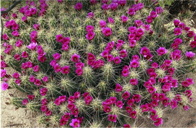 不过荒凉的另一面就是生命的繁华,每年初夏,这里俨然变成了仙人掌的乐土,各种各样的仙人掌在岩石缝、乱石滩和向阳的坡地上尽情的开花,用色彩点亮这片土地,美得让人心驰神往。